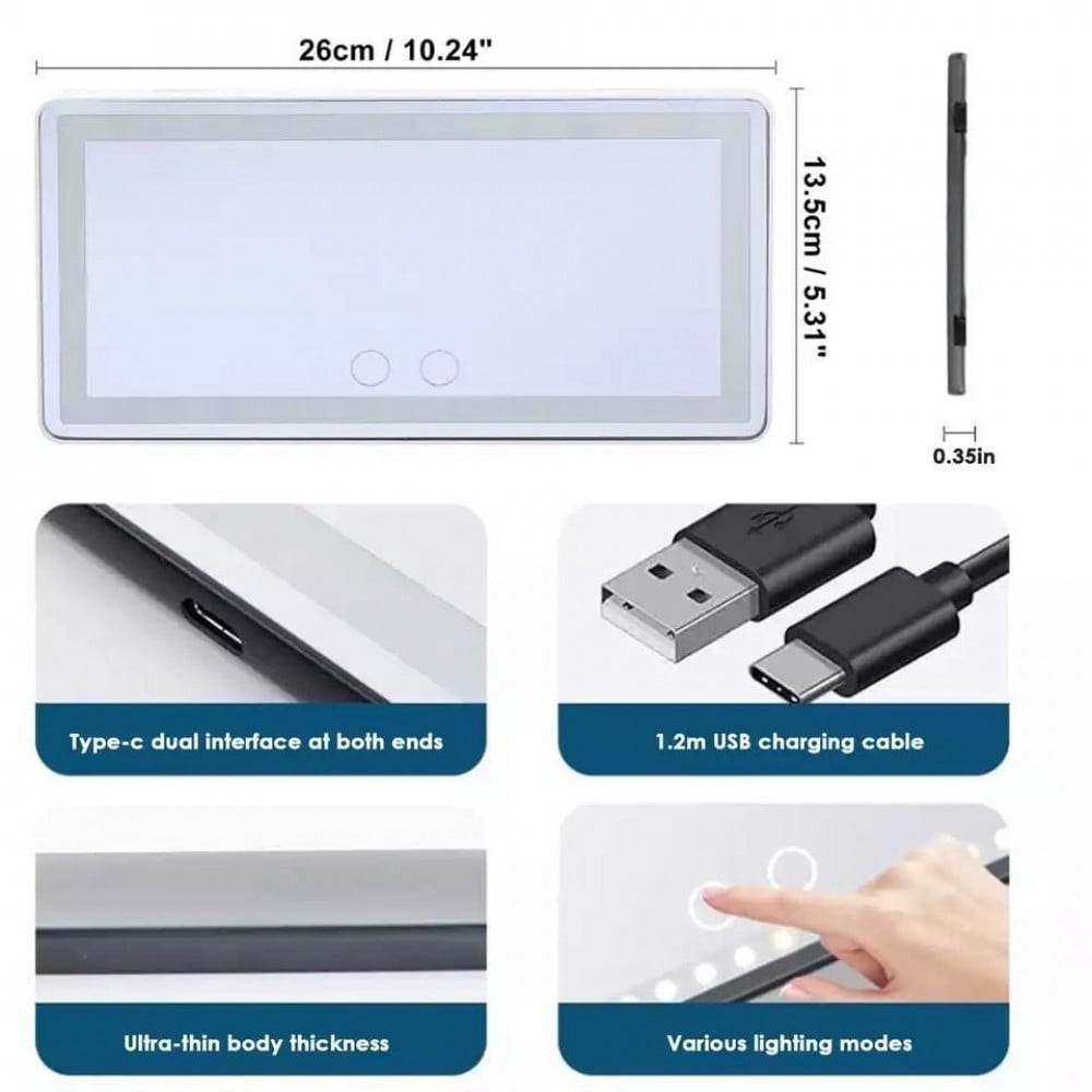مراية تثبت مضيئة بحاجب الشمس للسيارة LED باضاءة خافتة تعمل باللمس ،